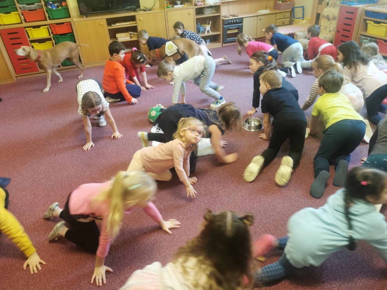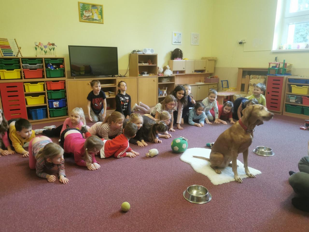 Dnes nas navštívila velmi milá a šikovná psí návštěva. Dva terapeutičtí pejskové Borůvka a Fidorka dětem předvedli co vše umí, s dětmi si zacvičili a nechali si s radostí podrbat své psí kožíšky.