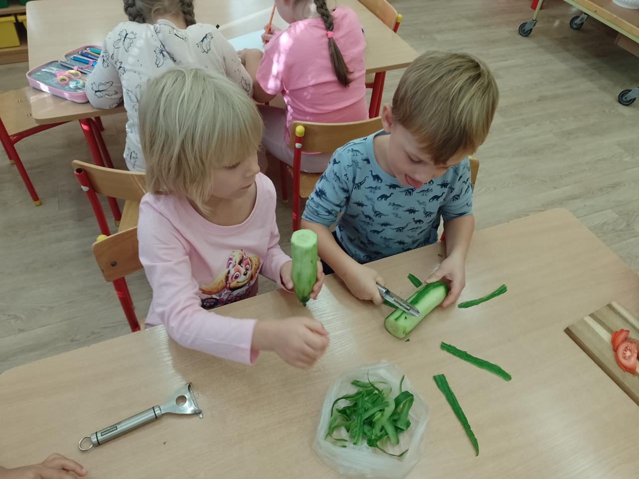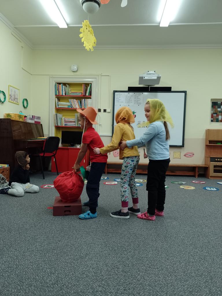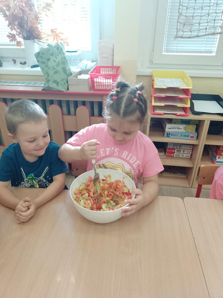 Poznáváme barvy,tvoříme z přírodních materiálů, rozlišujeme ovoce a zeleninu,vážíme si práce na zahradě (péče o plodiny a pěstování),hrajeme pohádku O Veliké řepě,připravujeme zeleninový salát k obědu,zavařujeme pro Malého pána,vyrábíme šťávu pro Malého pána...
