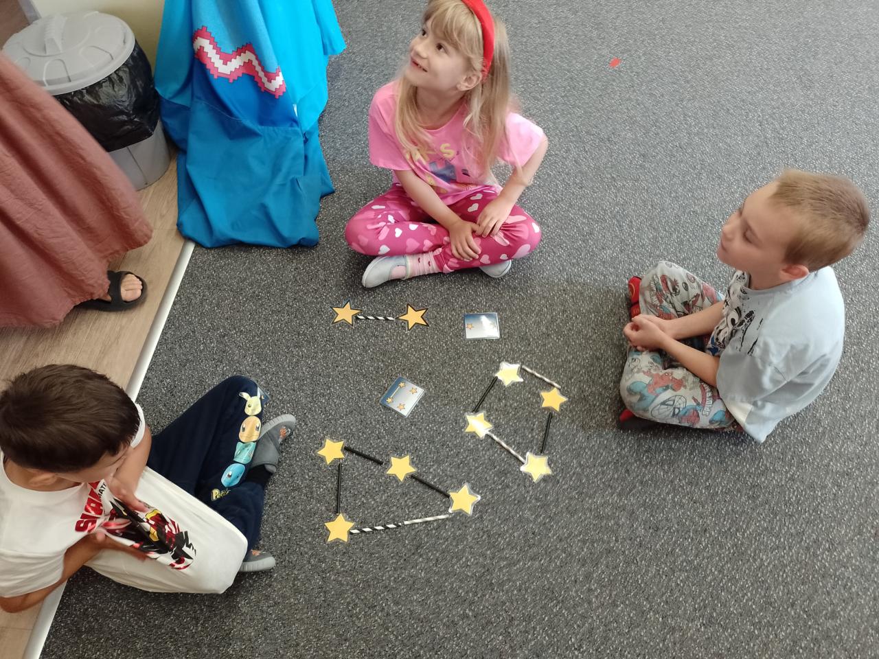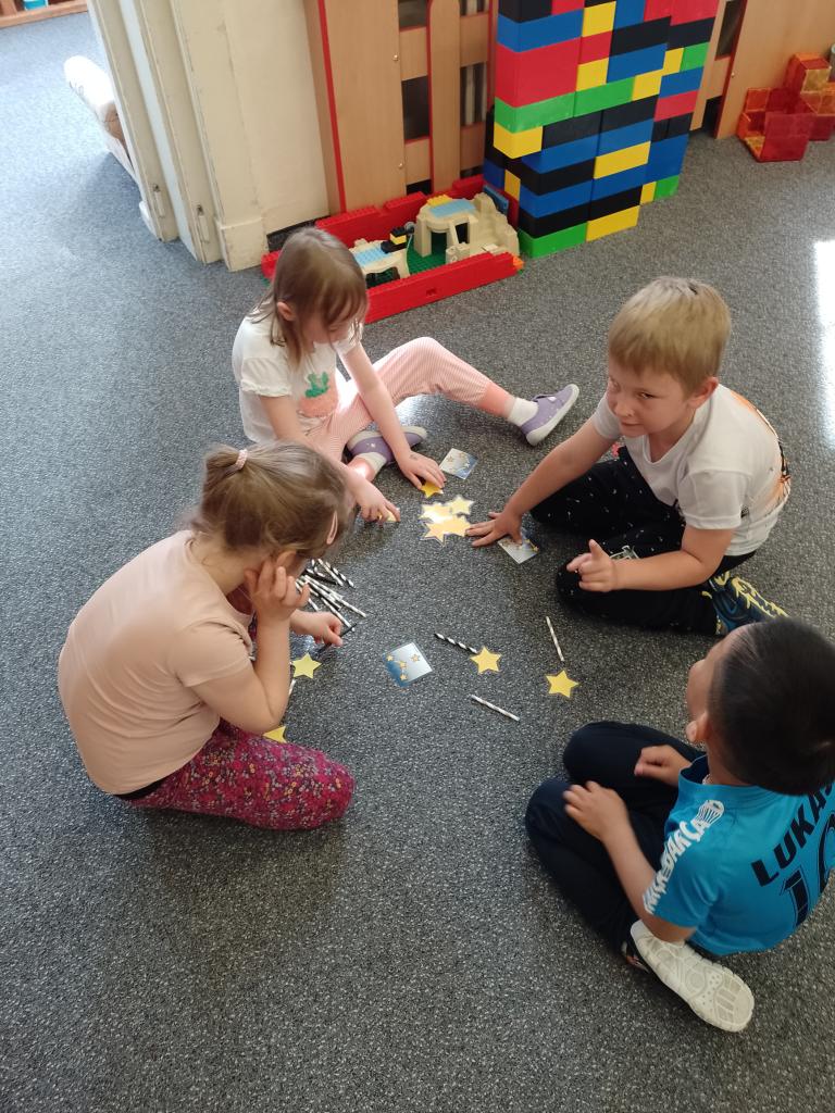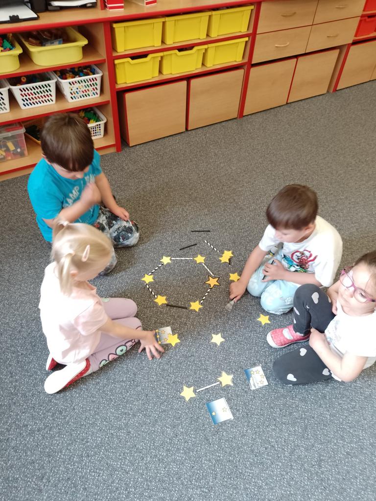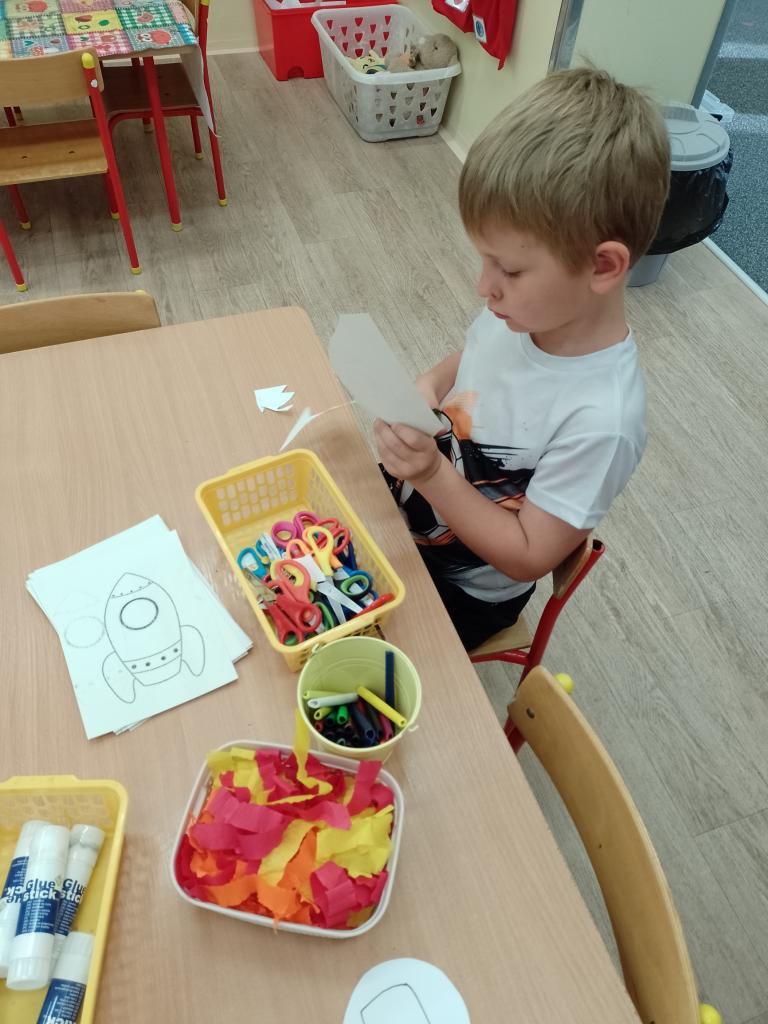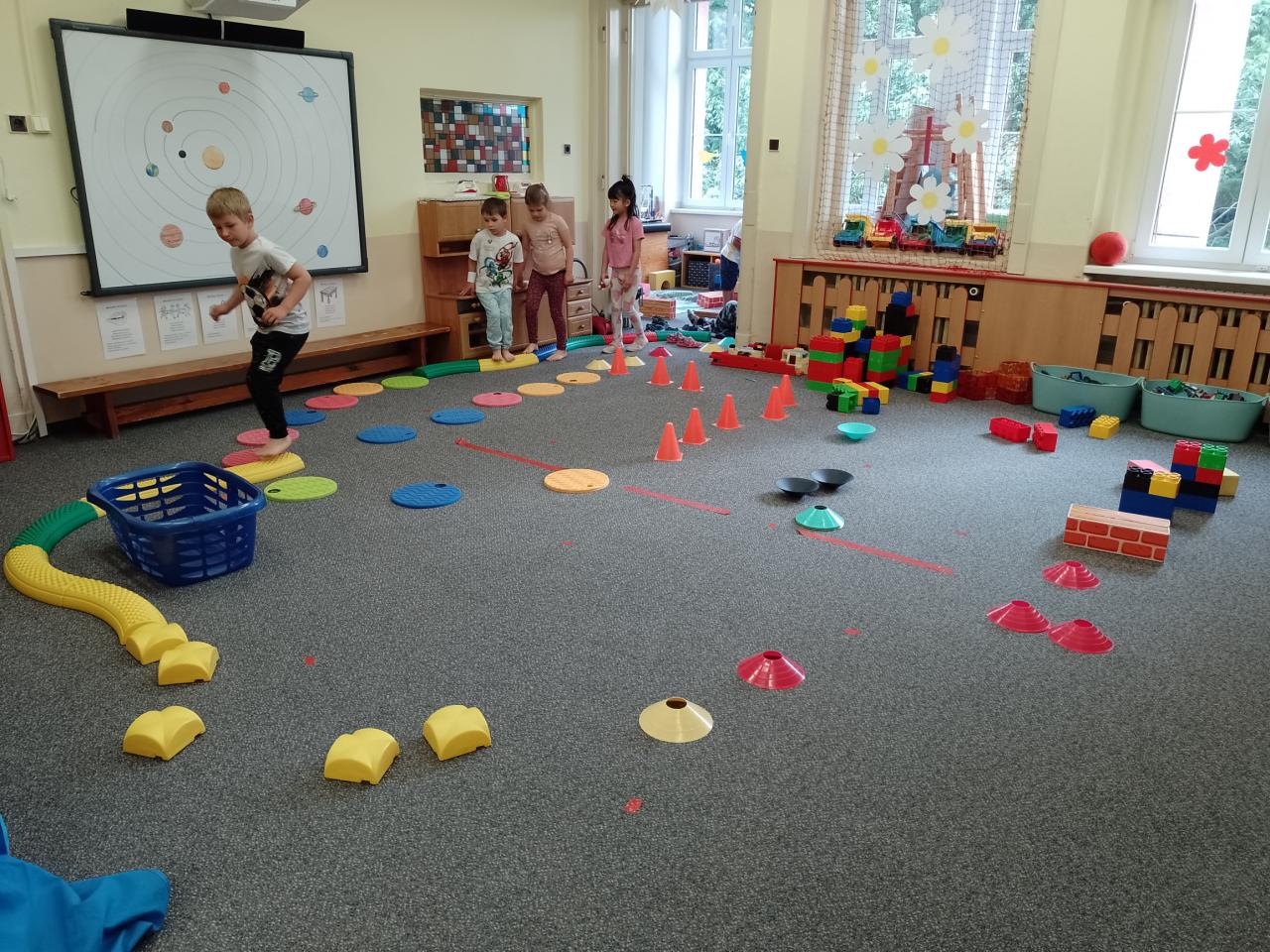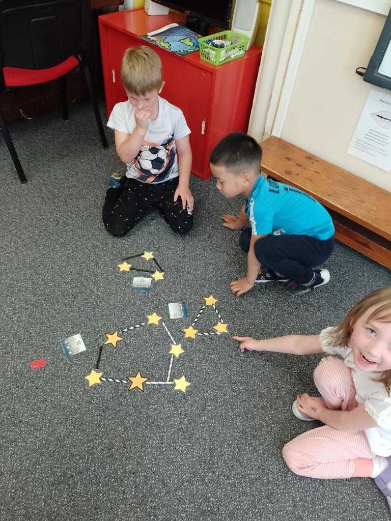 Děti si vyzkoušely přenášení prstence Saturnu, trénovaly dech foukáním do brčka s raketkou, společně skládaly souhvězdí, prohlížely si knihy o vesmíru, zvládly vesmírnou překážkovou dráhu, trénovaly jemnou motoriku - vytrhávaly planety z papíru a dávaly jim jména, přenášely planety pomocí kolíčku. Hráli jsme si na černou díru, vyráběli planetky a kosmonauty a mnoho dalšího...