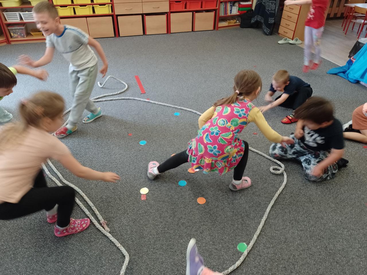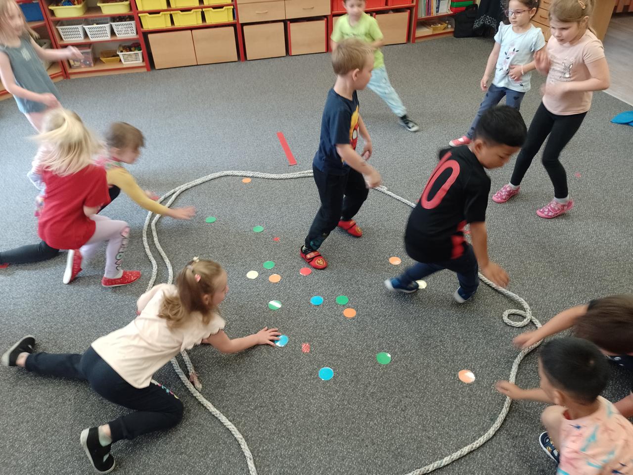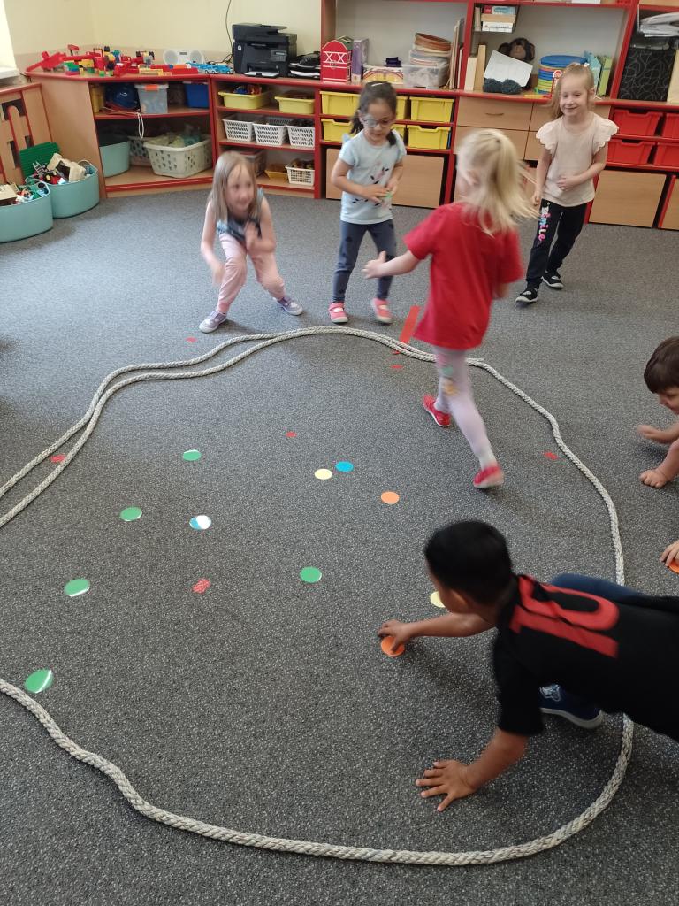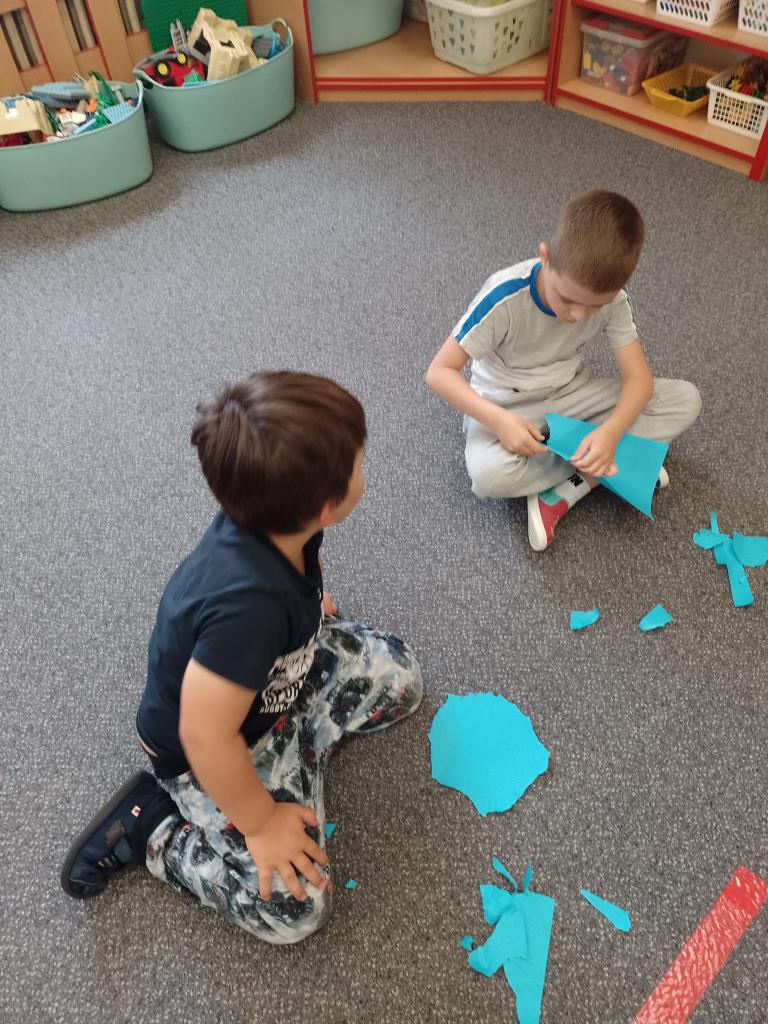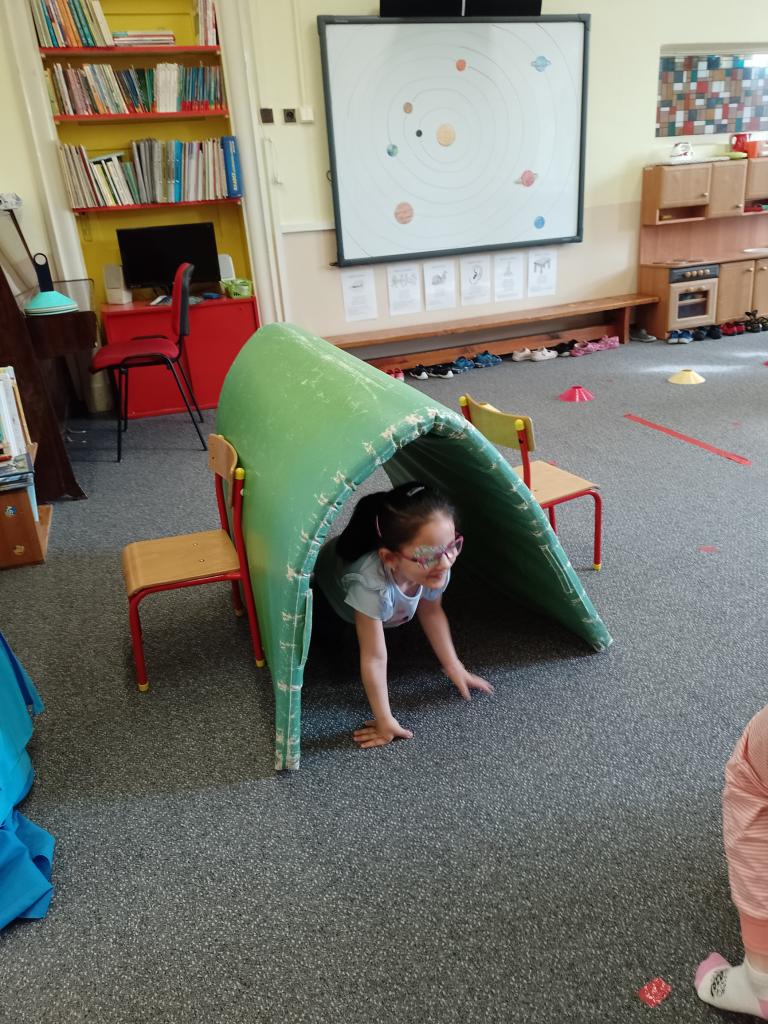 Děti si vyzkoušely přenášení prstence Saturnu, trénovaly dech foukáním do brčka s raketkou, společně skládaly souhvězdí, prohlížely si knihy o vesmíru, zvládly vesmírnou překážkovou dráhu, trénovaly jemnou motoriku - vytrhávaly planety z papíru a dávaly jim jména, přenášely planety pomocí kolíčku. Hráli jsme si na černou díru, vyráběli planetky a kosmonauty a mnoho dalšího...
