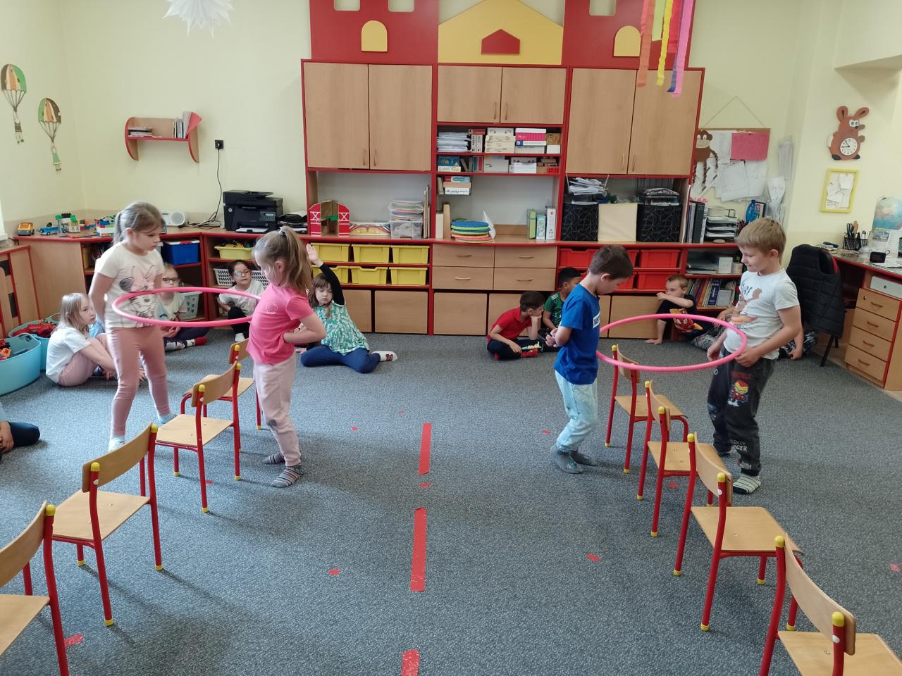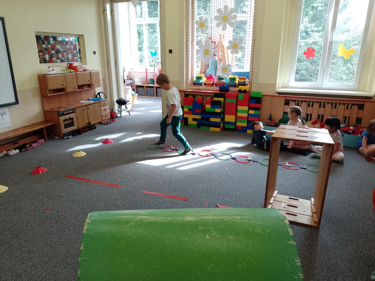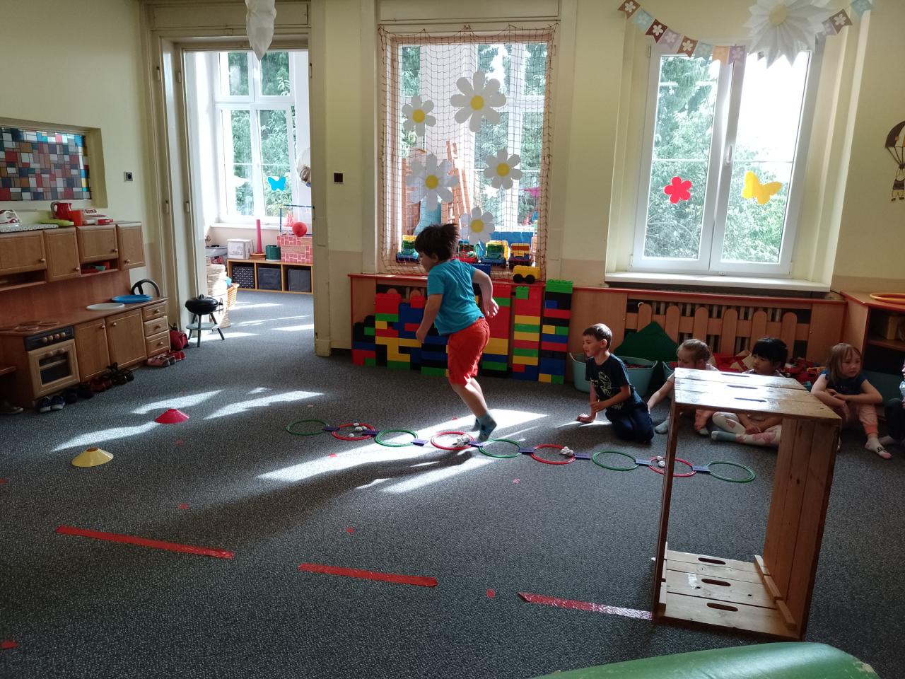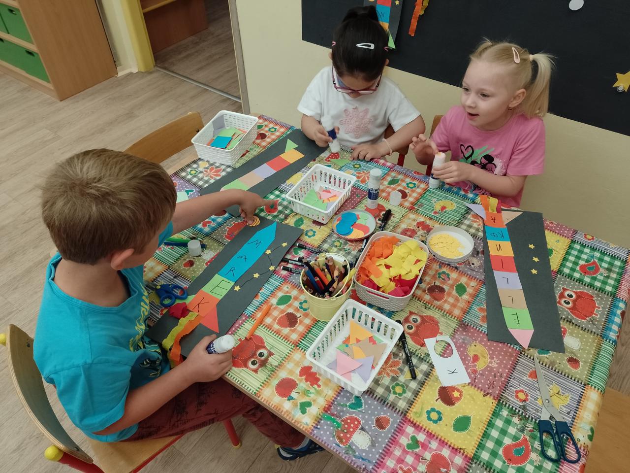 Děti si vyzkoušely přenášení prstence Saturnu, trénovaly dech foukáním do brčka s raketkou, společně skládaly souhvězdí, prohlížely si knihy o vesmíru, zvládly vesmírnou překážkovou dráhu, trénovaly jemnou motoriku - vytrhávaly planety z papíru a dávaly jim jména, přenášely planety pomocí kolíčku. Hráli jsme si na černou díru, vyráběli planetky a kosmonauty a mnoho dalšího...