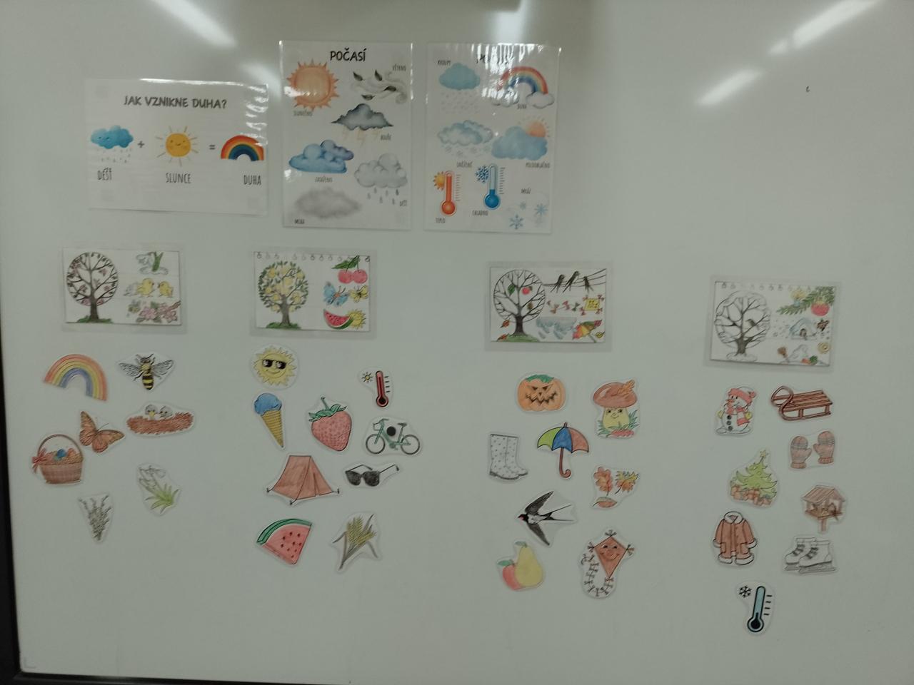 Tento týden jsme si povídali o počasí,poznávali různé druhy počasí,trénovali pusinku a výdechový proud v rámci logopedických chvílek,zkusili jsme si nové pohybové hry,procvičovali jsme grafomotoriku a jemnou motoriku vytrháváním mraků z papiru,řádili v listí...