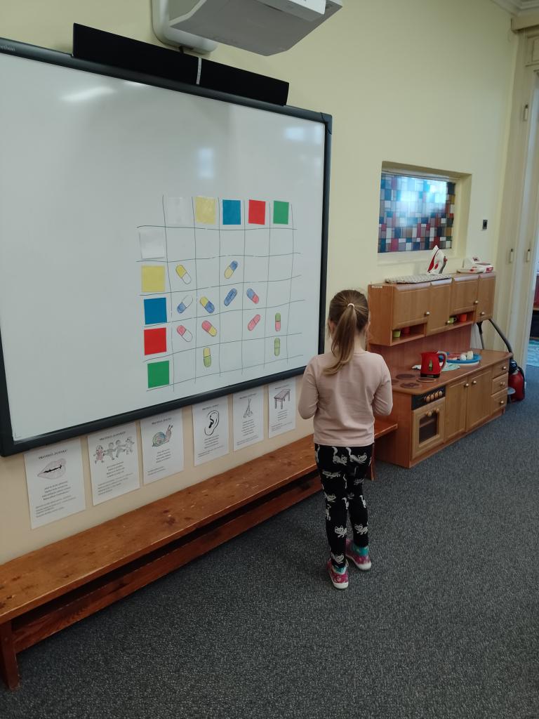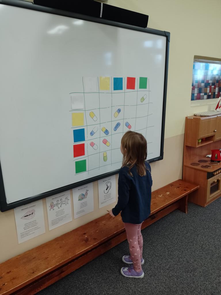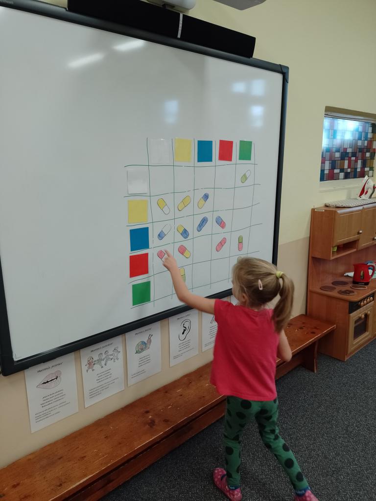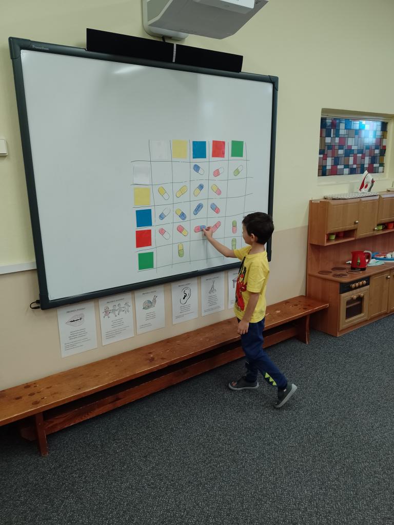 V tomto týdnu jsme si povídali o lékařském povolání,tvořili,hráli různé hry na téma zdraví,učili se pečovat o zoubky,pomáhali panu lekárníkovi třídit léky,pečovali o nemocného Bertíka. Také jsme přemýšleli,jak pomoci kamarádovi, který je nemocný...a k naší radosti nám napadlo trošku sněhu!!!