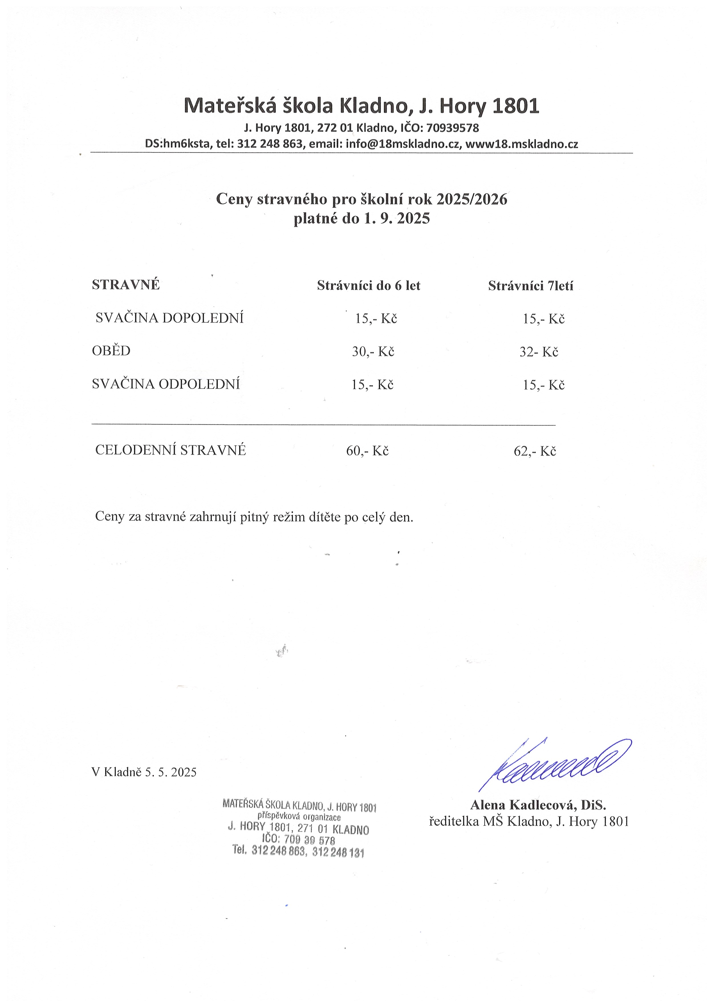 Ceny stravného ve školním roce 2025/2026